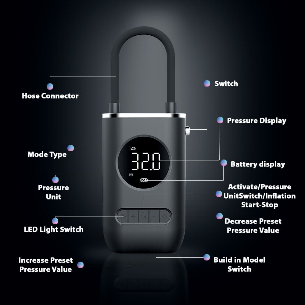 - No Overinflation: Once the pressure value you set is reached, the air pump will stop inflating automatically.