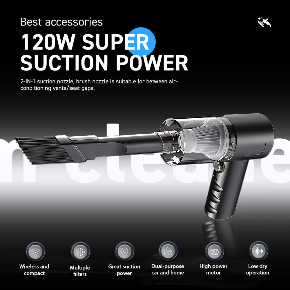 - Multifunctional Accessories: 2-IN-1 suction nozzle, brush nozzle is suitable for between air-conditioning vents/seat gaps.