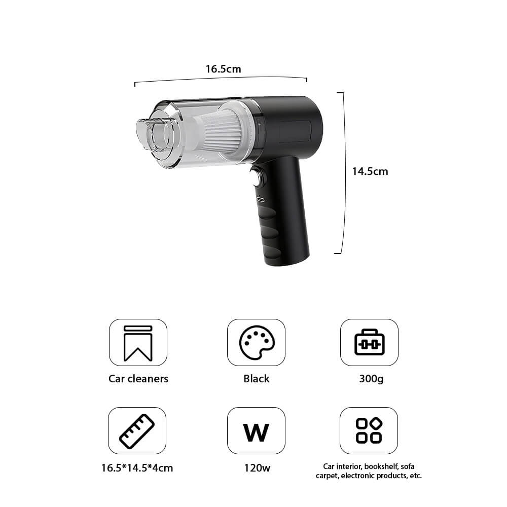 - Portable Design: The handheld vacuum cleaner has a lightweight body and weighs only 0.30 KG.