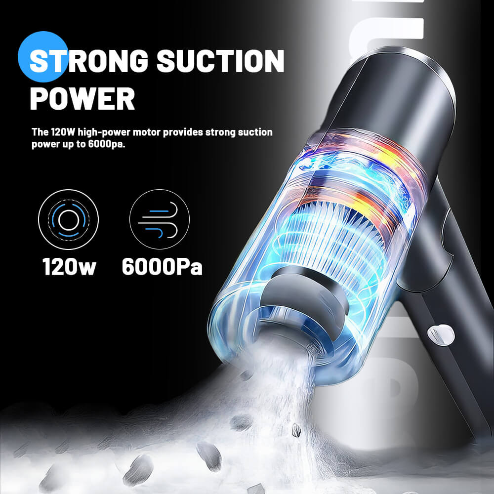 - Strong Suction Power: The 120W high-power motor provides strong suction power up to 6000 pa.