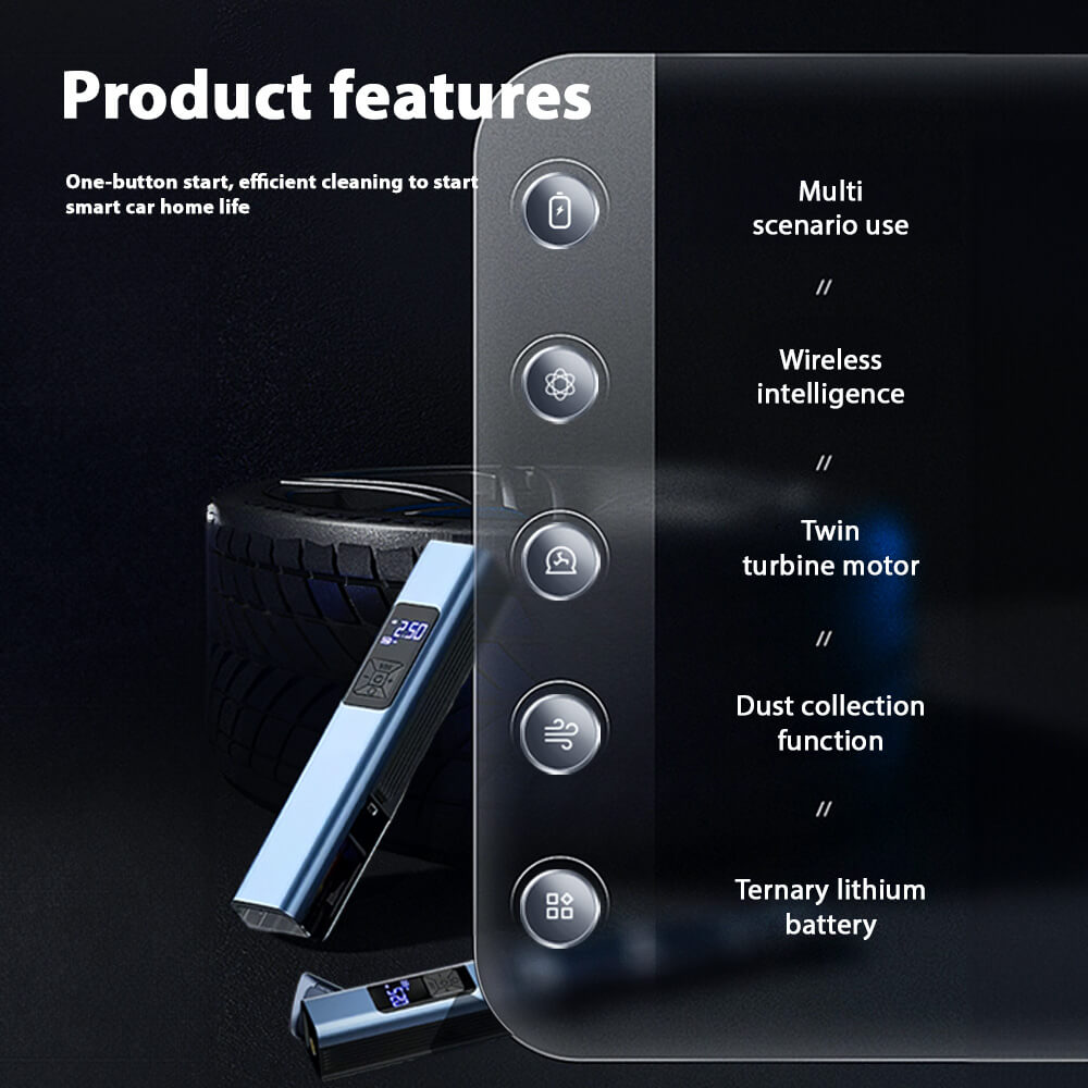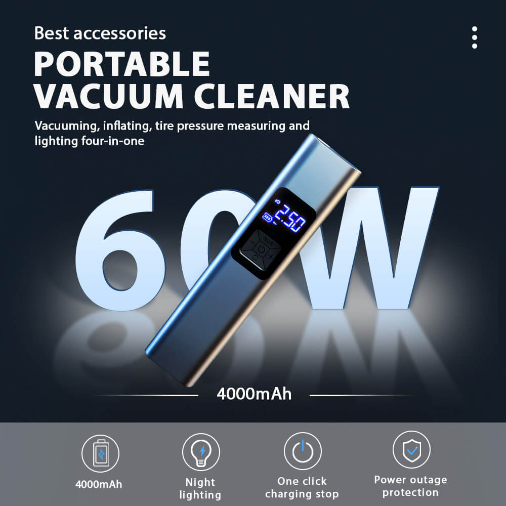 4-In-1 Portable Cordless Tire Inflator 4000mAh Vacuum Cleaner