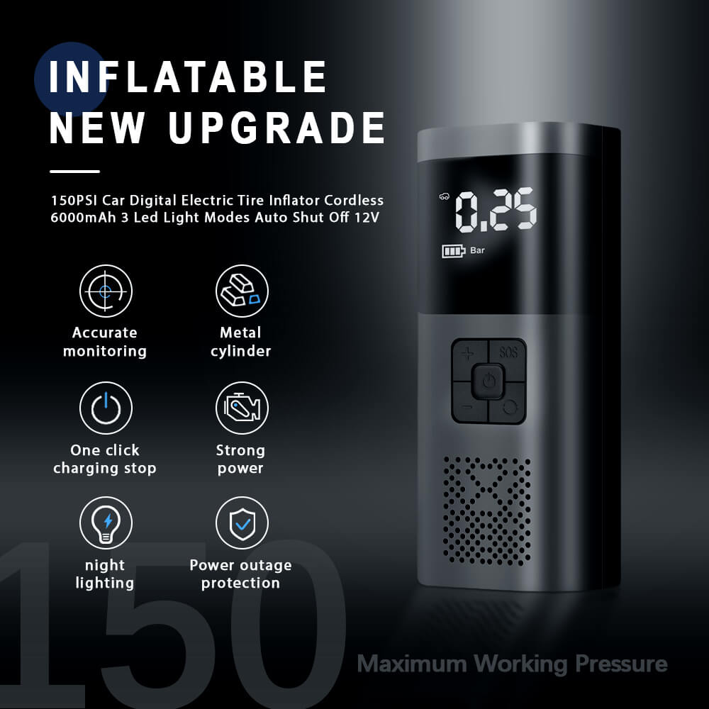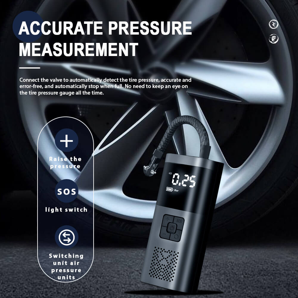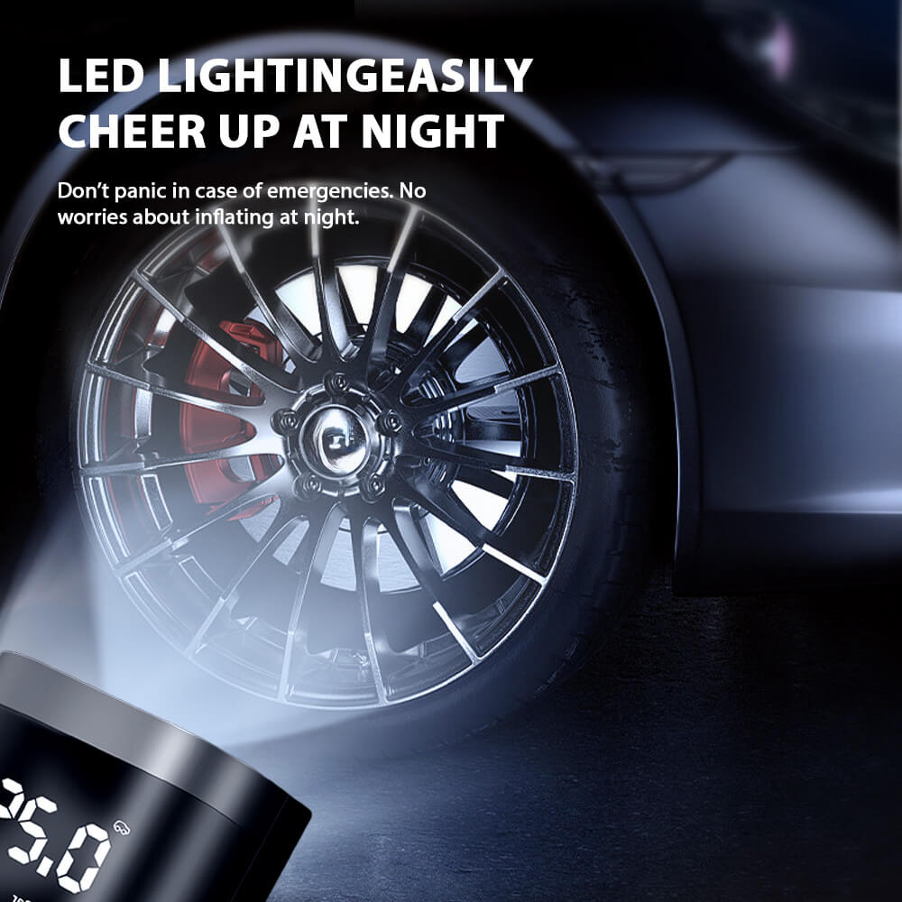 - This car tire inflator has a built-in high-power copper motor with strong power and low noise.