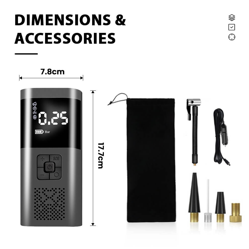 - It is equipped with four different inflatable nozzles, suitable for cars, motorcycles, electric bicycles, bicycles, balls, inflatable kayaks, etc.