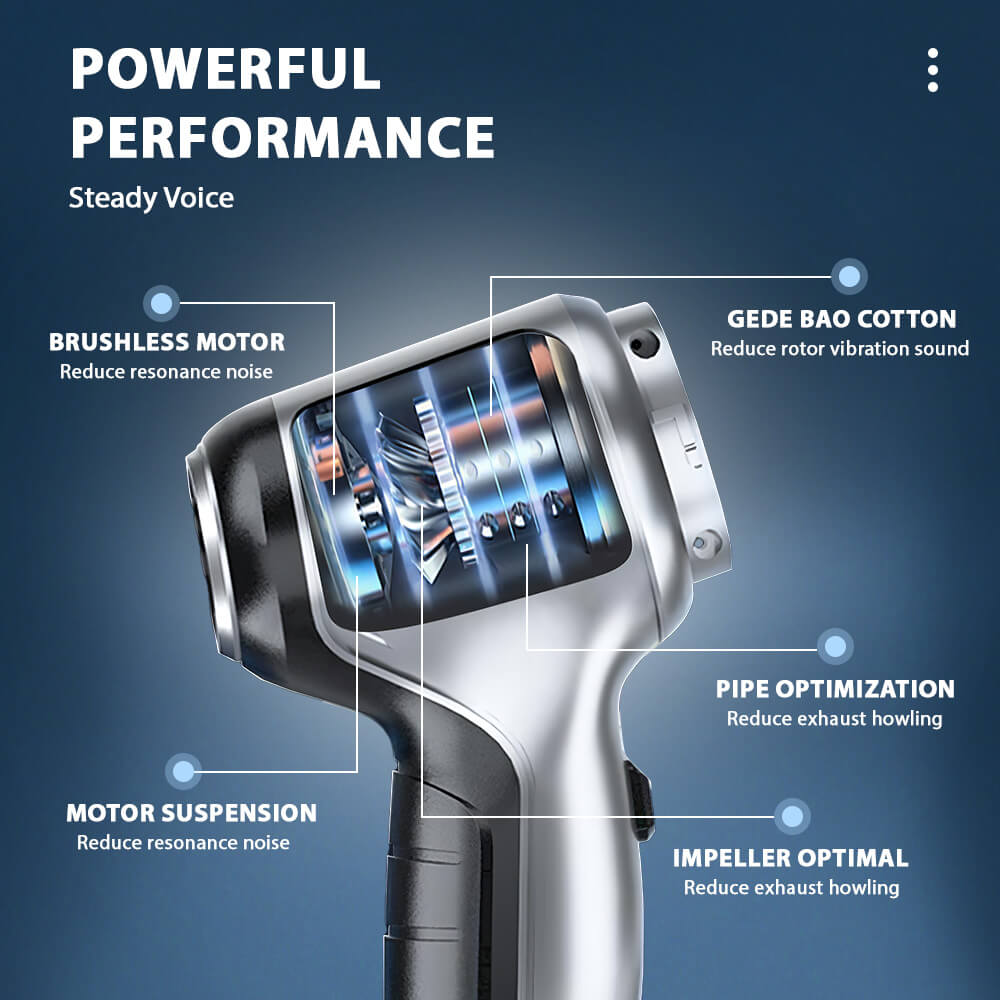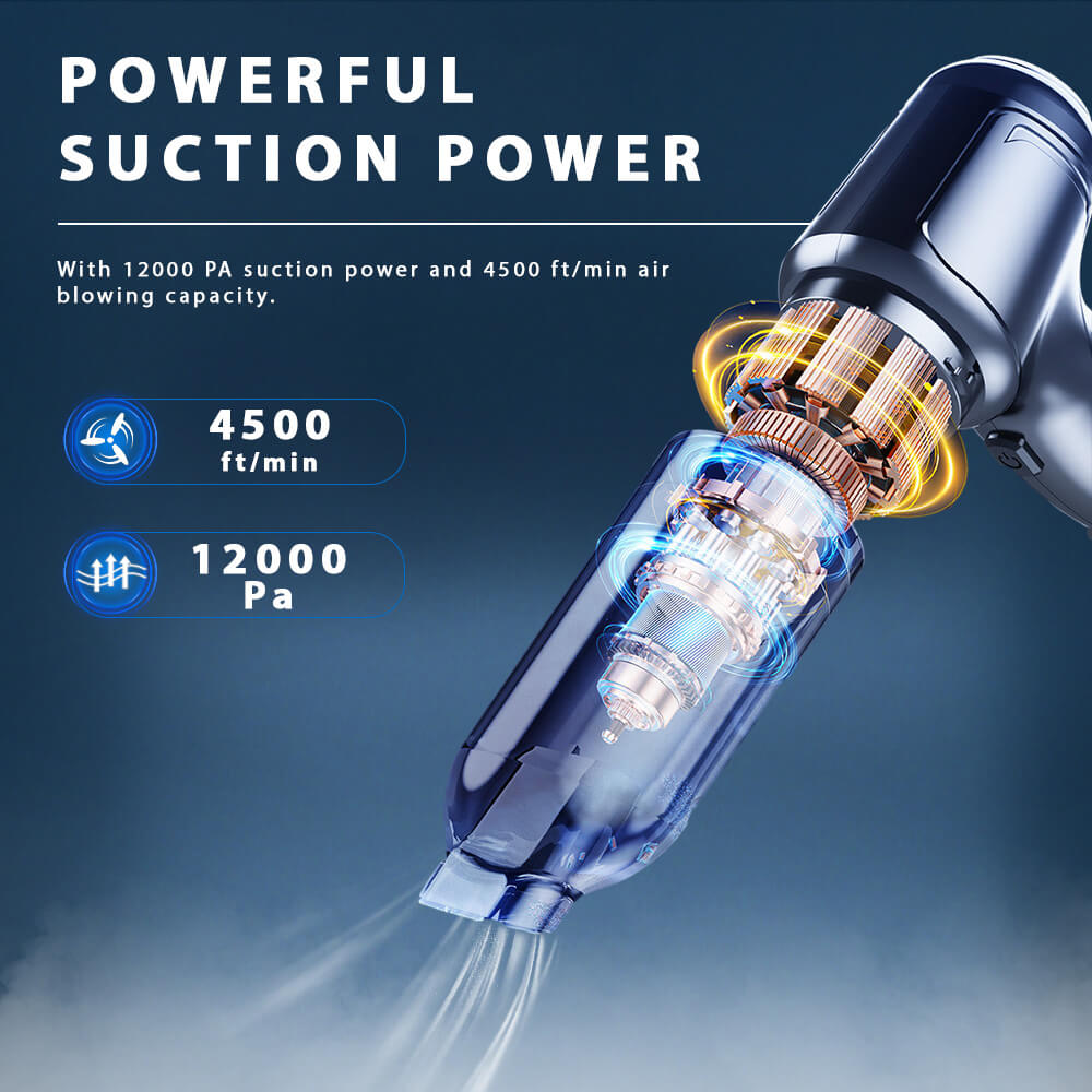 - Powerful Suction Power: With 12000 PA suction power and 4500 ft/min air blowing capacity.