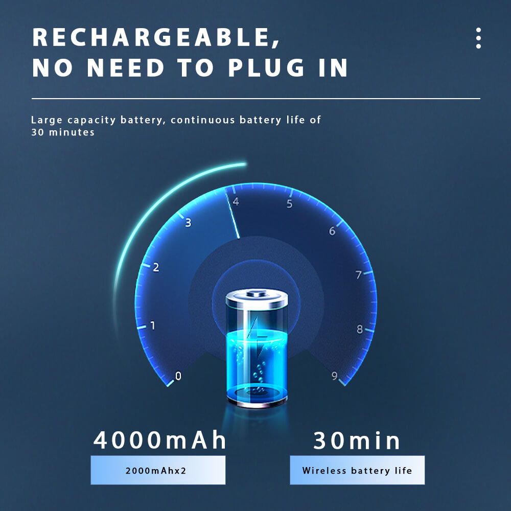 - Wireless & USB Rechargeable: Built-in 4000mAh battery, can work continuously for 30 minutes.
