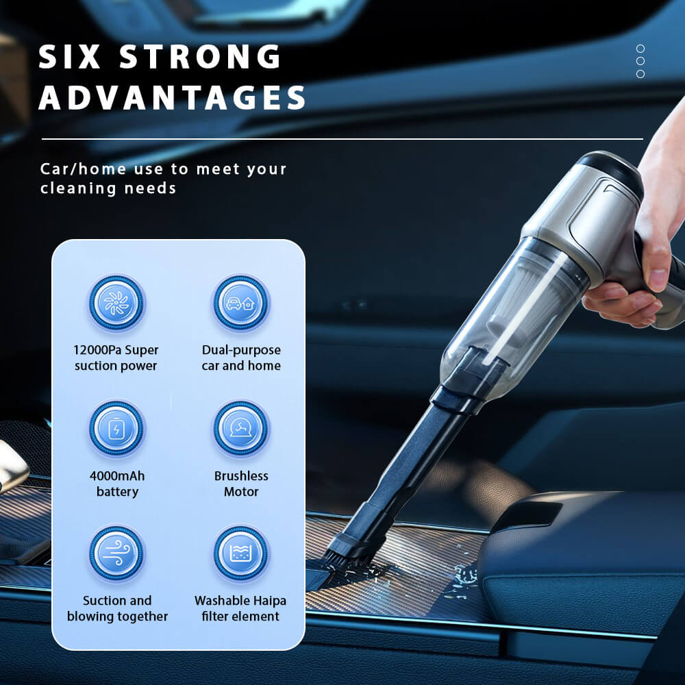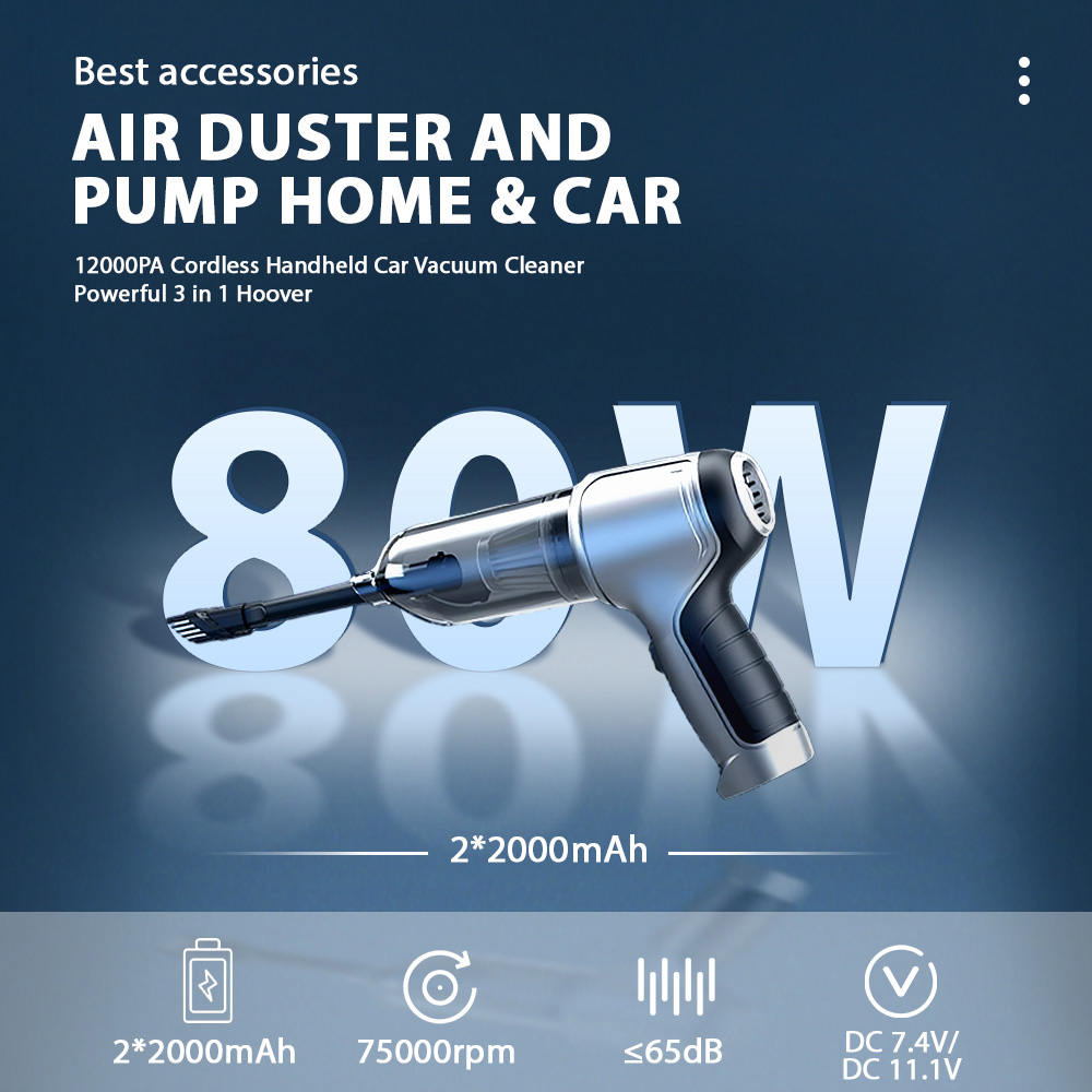 Powerful 3 in 1 Cordless Handheld Car Vacuum Cleaner 12000 PA